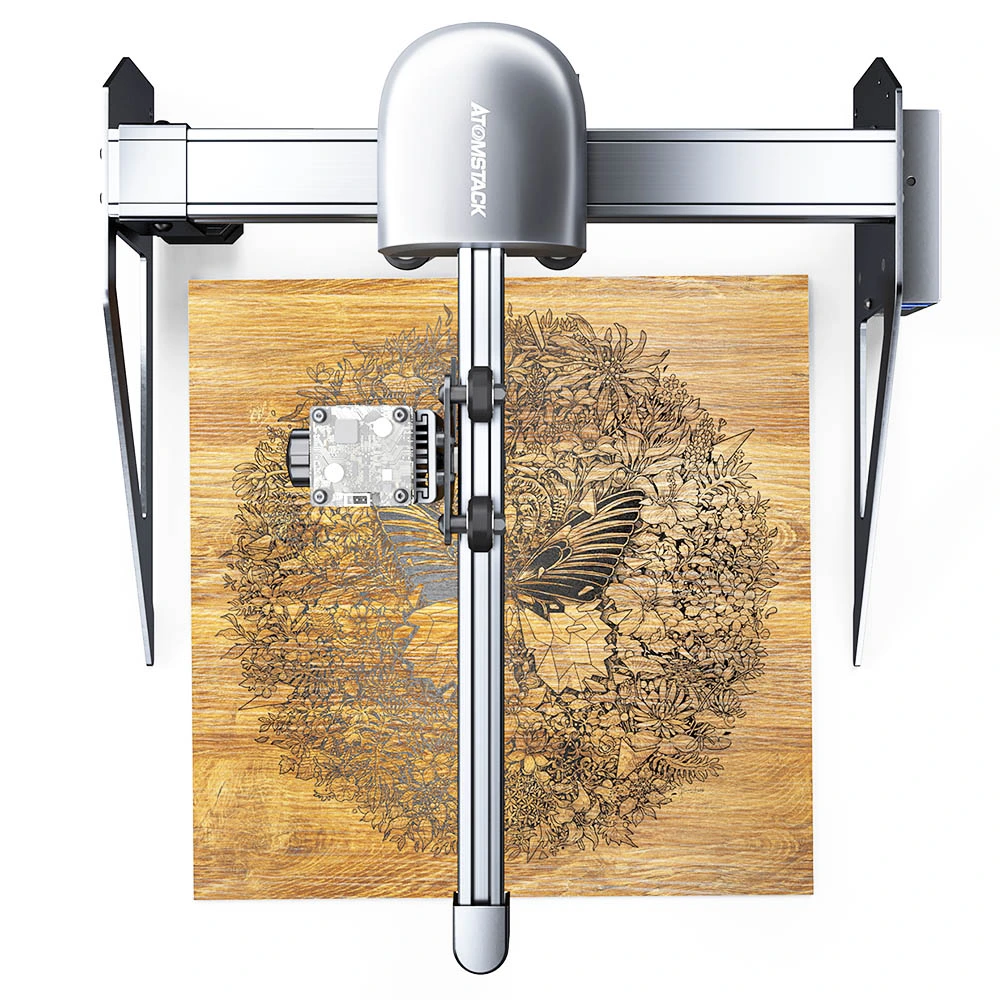 The laser adopts 4-fold lens group collimation and focuses technology, the optical power is 4.5~5.5W, the laser focus area is reduced to 0.02mm², the high-density laser can easily cut 10mm thick wood boards and 6-8mm black acrylic; Can directly engrave mirror stainless steel metal and ceramics.