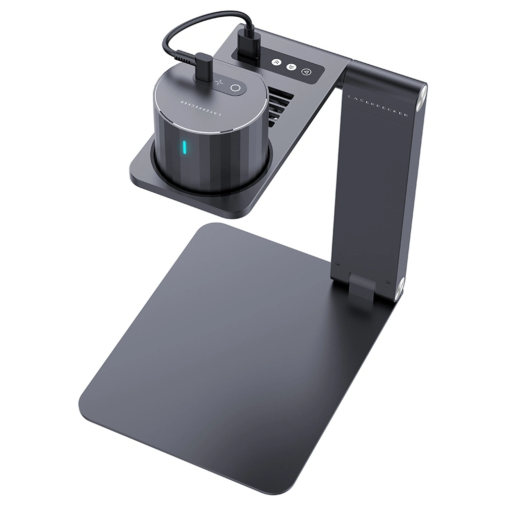 Customized for LaserPecker engravers, the auto-adjusting support is sets up and focuses in seconds. All you have to do is put the engraving target on the spot. The built-in sensors of the stand will measure the distance between the laser generator and the target and automatically adjust the height to make sure the focal point is the correct distance from the surface of the object.